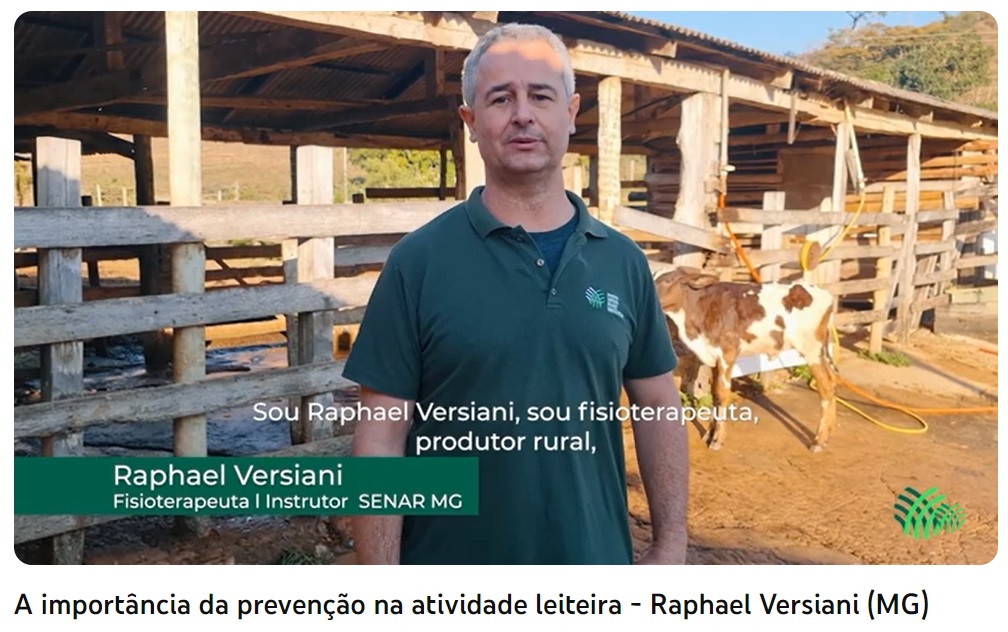 Já o instrutor Raphael Sanzio Versiani, de Montes Claros/MG, destacou em seu vídeo problemas de saúde que podem ser desenvolvidos pelo trabalhador da atividade leiteira, apresentando dicas de prevenção. Ele foi agraciado com o prêmio na categoria Promoção Social, juntamente com instrutores de Goiás e Rio Grande do Norte.