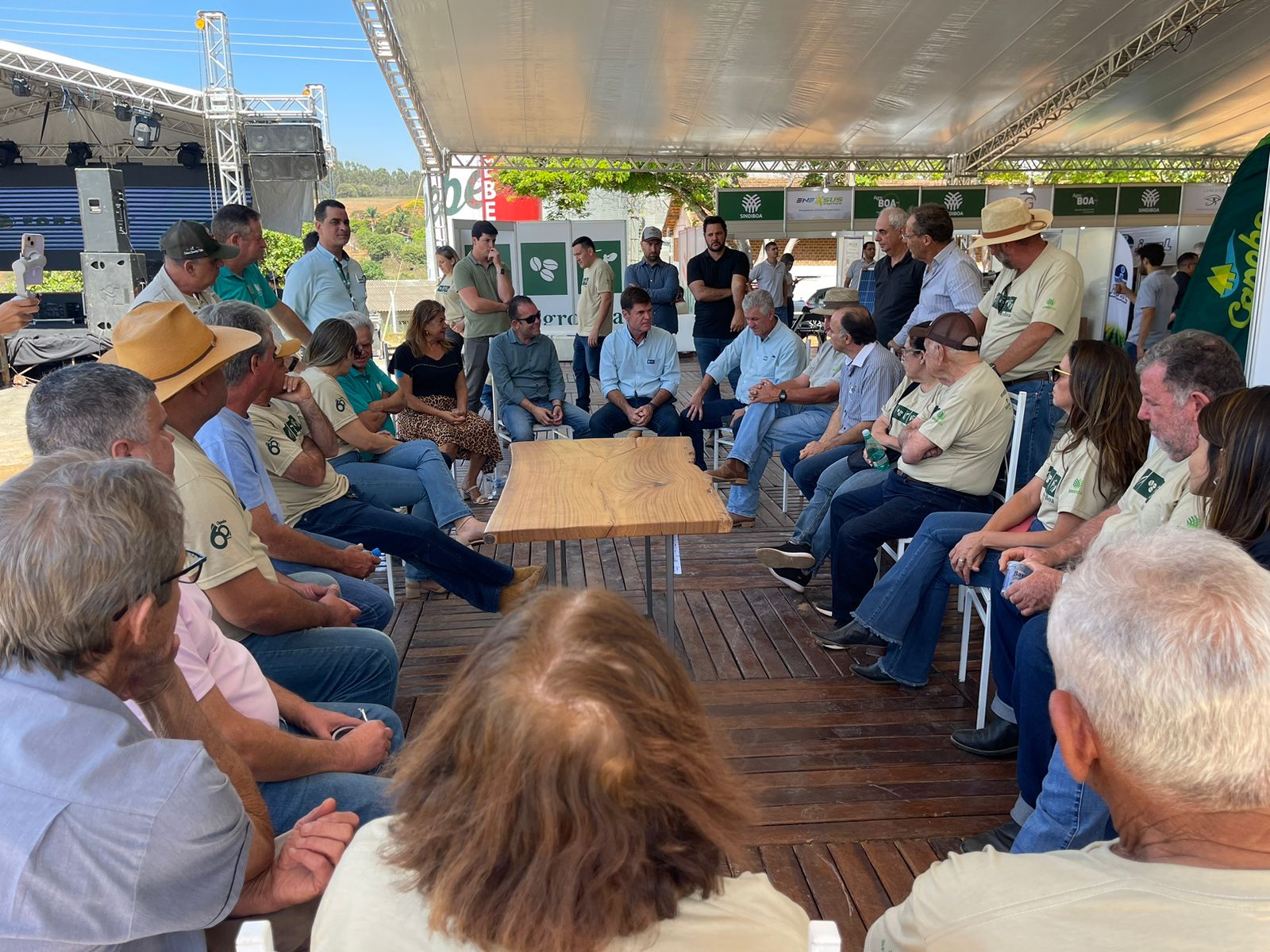 A diretoria do Sistema Faemg Senar esteve acompanhada pelo gerente regional da entidade em Varginha, Caio Oliveira, pelo diretor do Centro de Excelência em Cafeicultura, Roberto Barata, e do vice-presidente do SindiBoa, Henrique Pacheco, além do analista regional do Sistema Faemg Senar de Varginha, Aluízio Guimarães. Presidentes de Sindicatos Rurais da região e diversos agentes de desenvolvimento rural também prestigiaram a AGROBOA, que termina dia 16 de setembro.